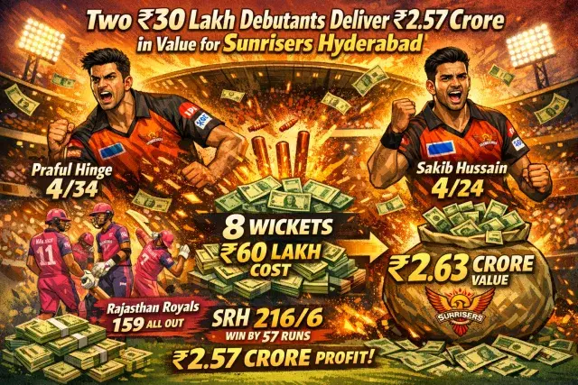 Eight wickets between them. A combined auction price of ₹60 lakh. A calculated return of ₹2.63 crore in a single outing. The numbers surrounding Praful Hinge and Sakib Hussain's performances for Sunrisers Hyderabad against Rajasthan Royals in IPL 2026 are not the kind that typically emerge from the bottom tier of any roster. Yet that is precisely where both men sat — ₹30 lakh each, acquired at the far end of the auction spectrum — before they dismantled one of the most potent batting line-ups the competition had produced this season.